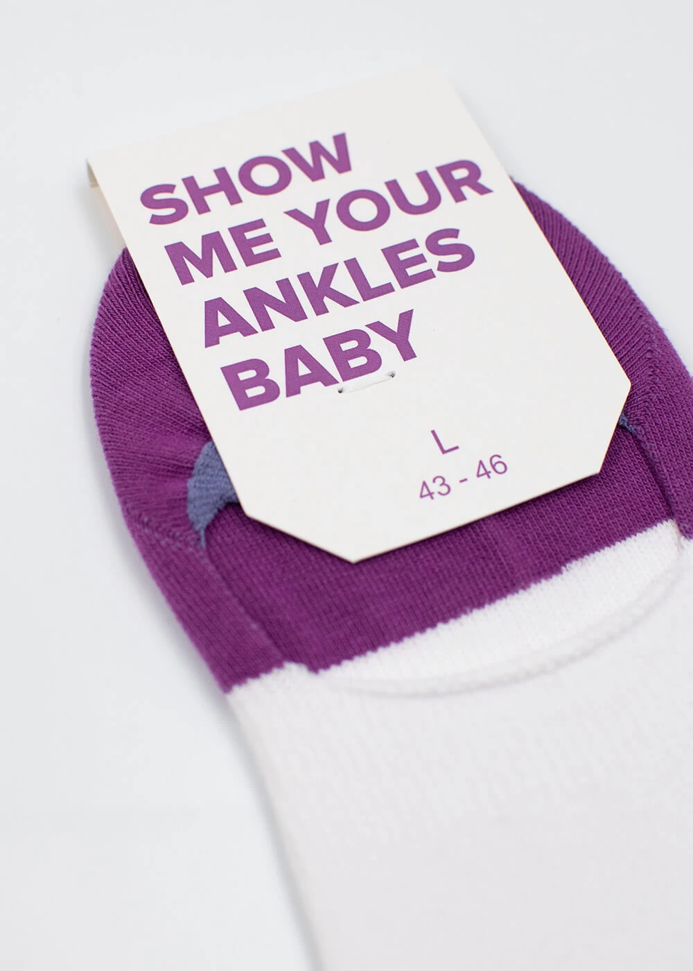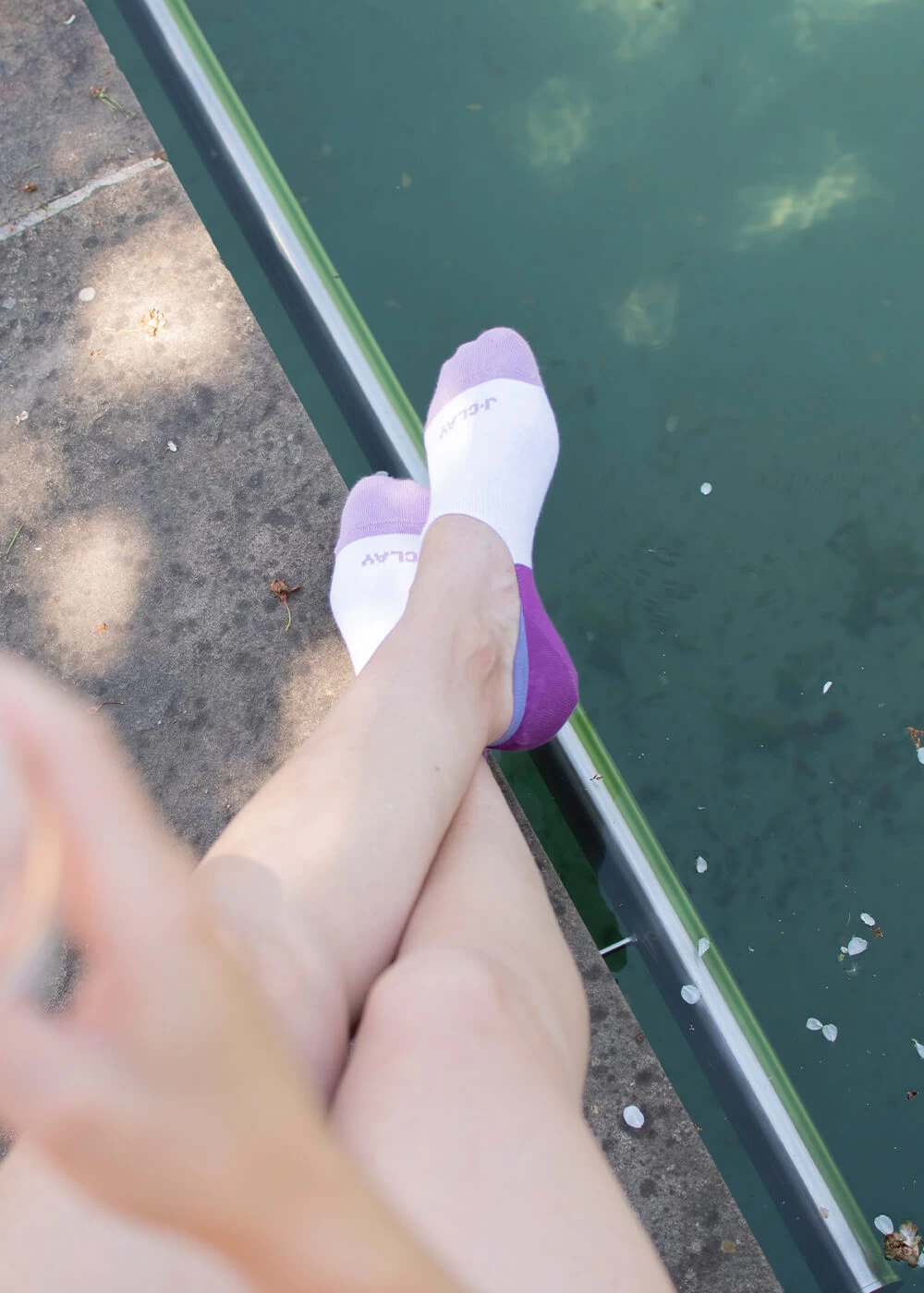 Füßlinge in lila und weiß, als perfektes Accessoire zu deine Sneakern!