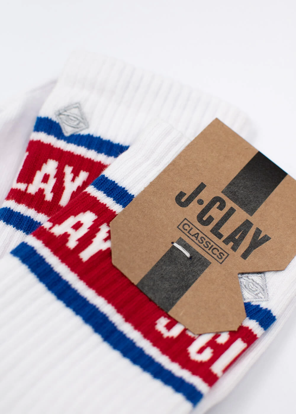 Die „Classics“ sind, old school Logo Tennissocke in der das J.Clay Signet von einem dicken roten Streifen eingefasst und zwei blauen Streifen umrahmt wird.