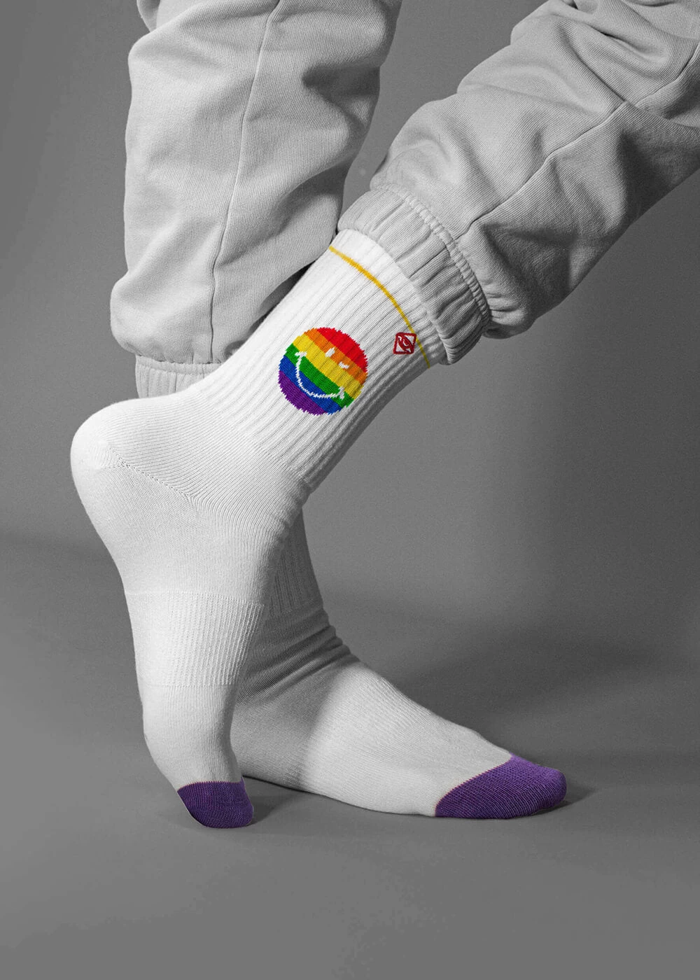 Rainbow Smile – Schenke der Welt ein lächeln! Mit der Regenbogen Emoji Tennissocke hast du die gute Laune immer an den Füßen auch wenn du mal nicht so gut drauf bist.